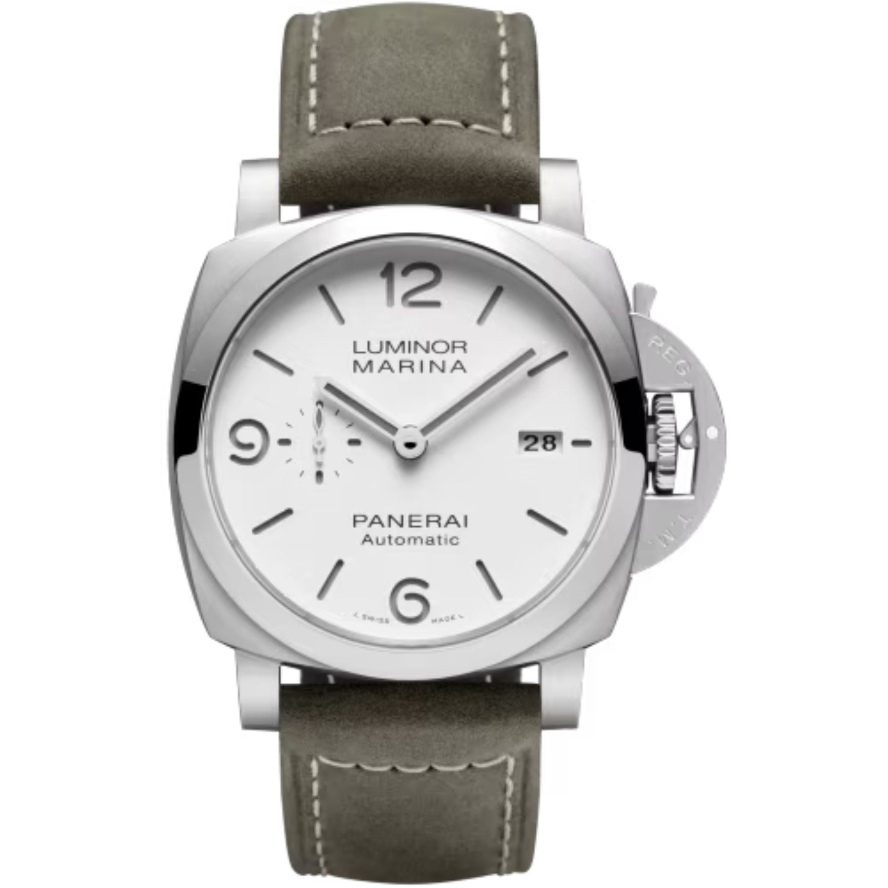 Dial:White with luminous Arabic numerals and hour markers Date at 3 o'clock and small seconds at 9 o'clock